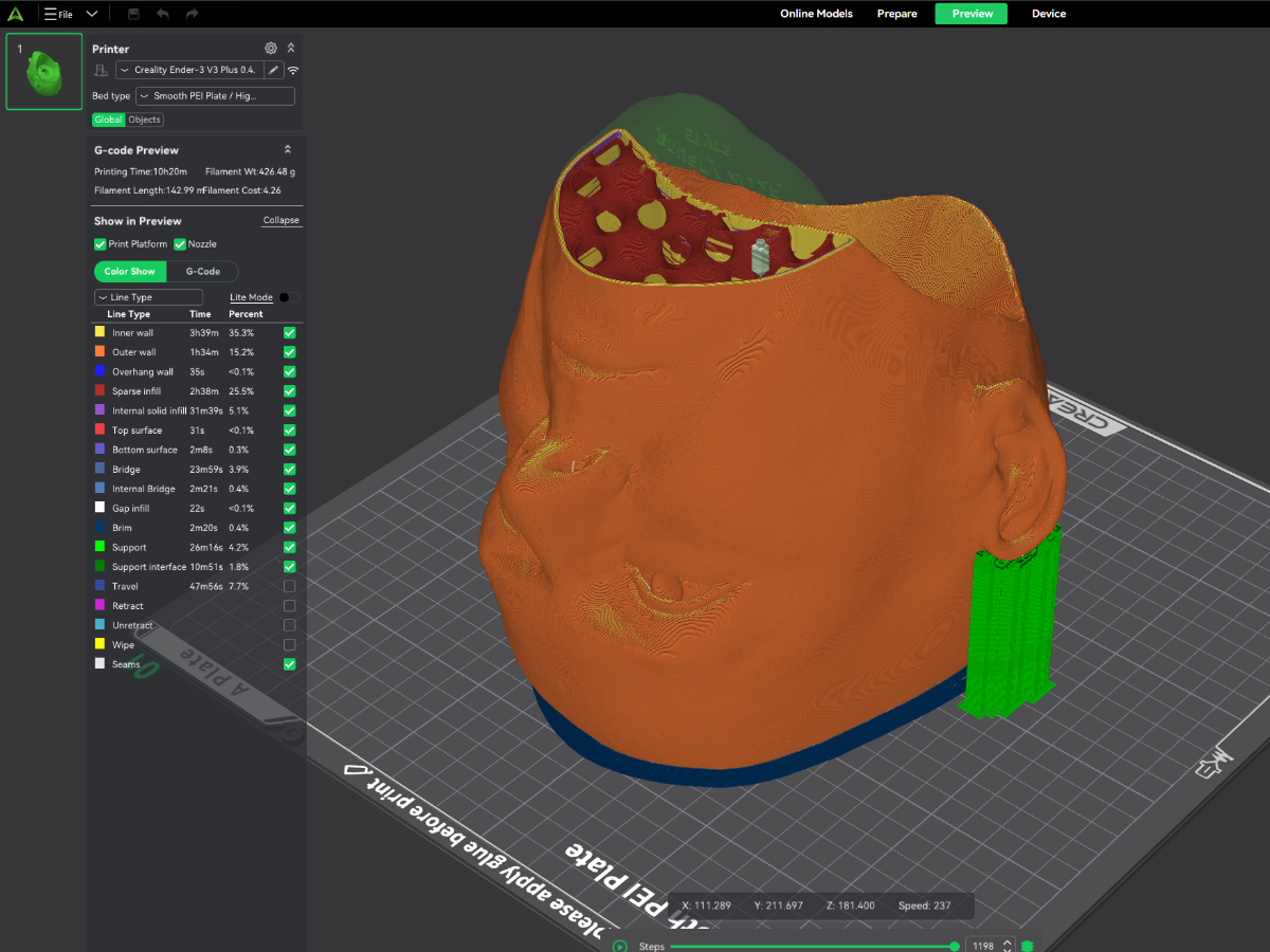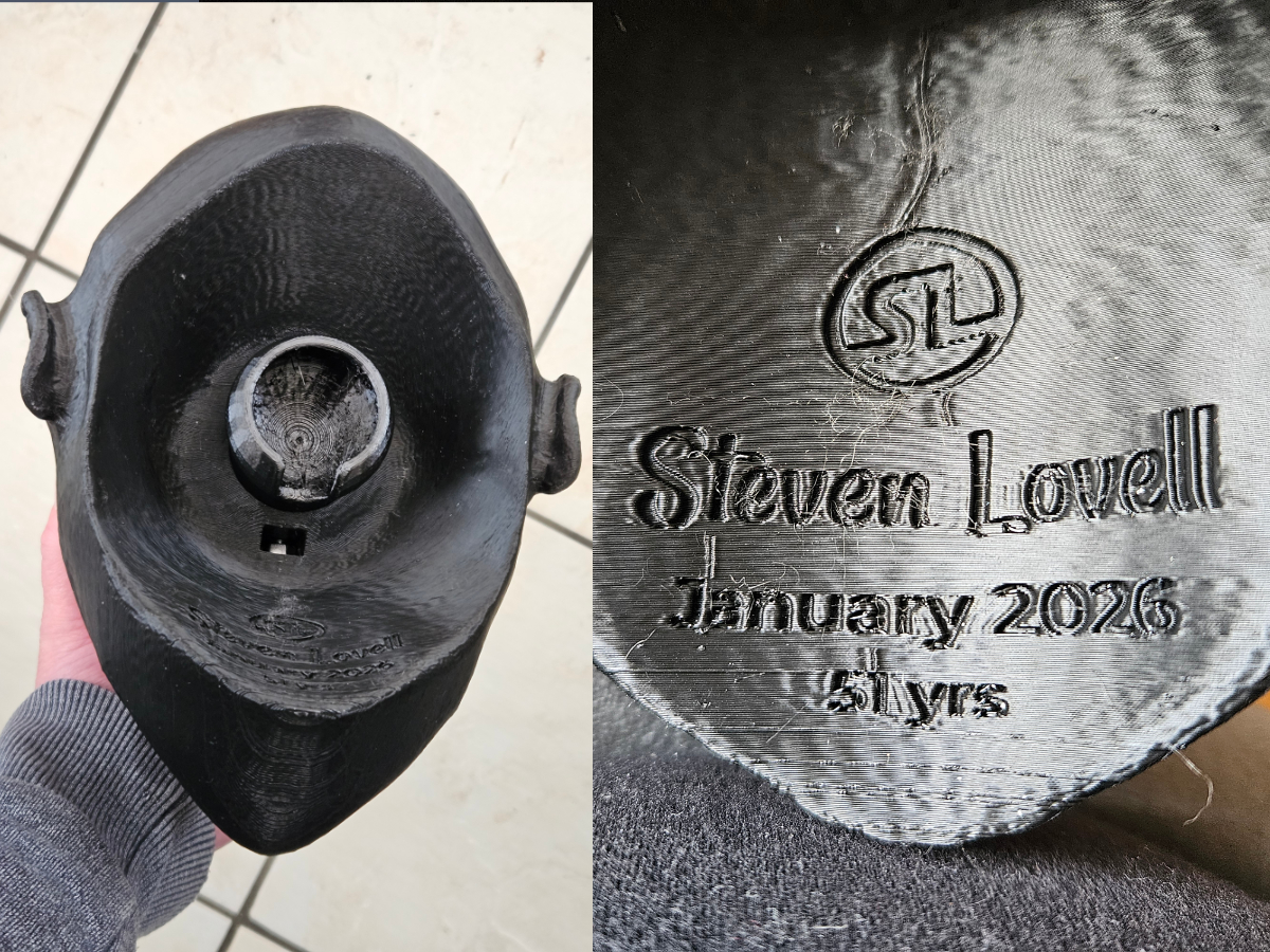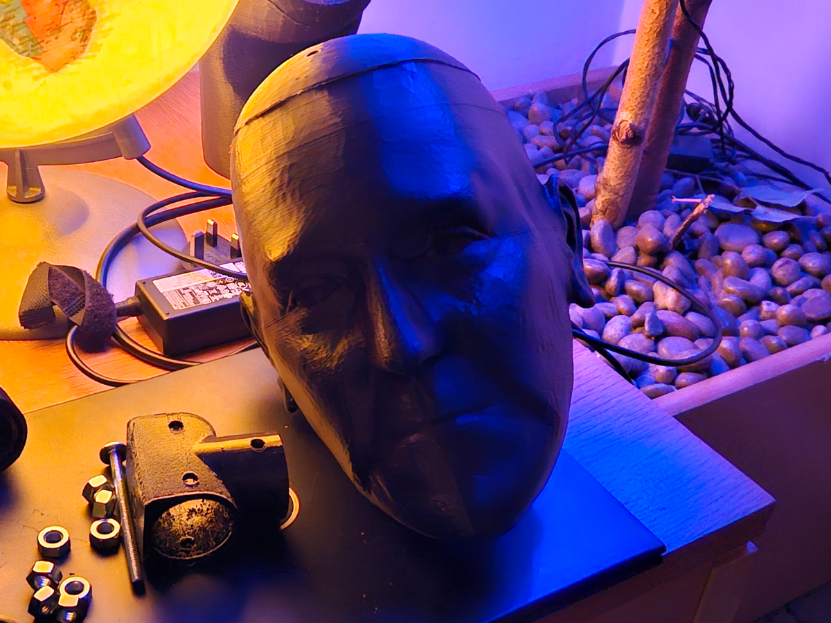 A 3D printed full size replica of a human figure with my approximate dimensions and likeness. Also featuring jointed arms, neck and hands.